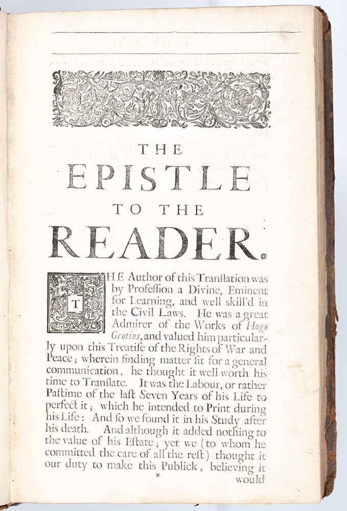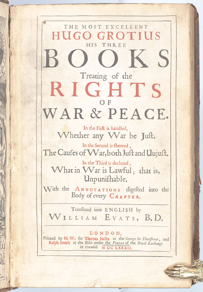 Rare third edition in English of Hugo Grotius' Three Books Treating of the Rights of War & Peace