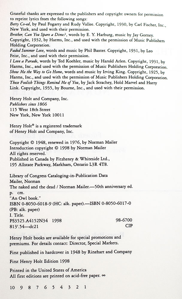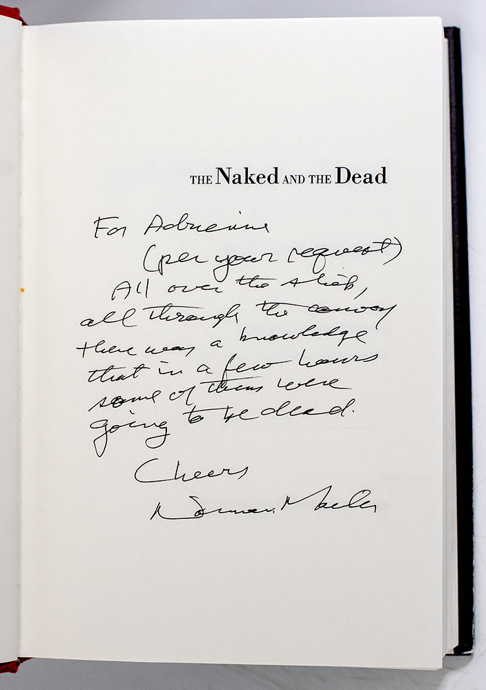 "All over the ship, all through the convoy there was a knowledge that in a few hours some of them were going to be dead": First Edition of The 50th Anniversary Edition of The Naked and the Dead; Lengthily Inscribed by Norman Mailer