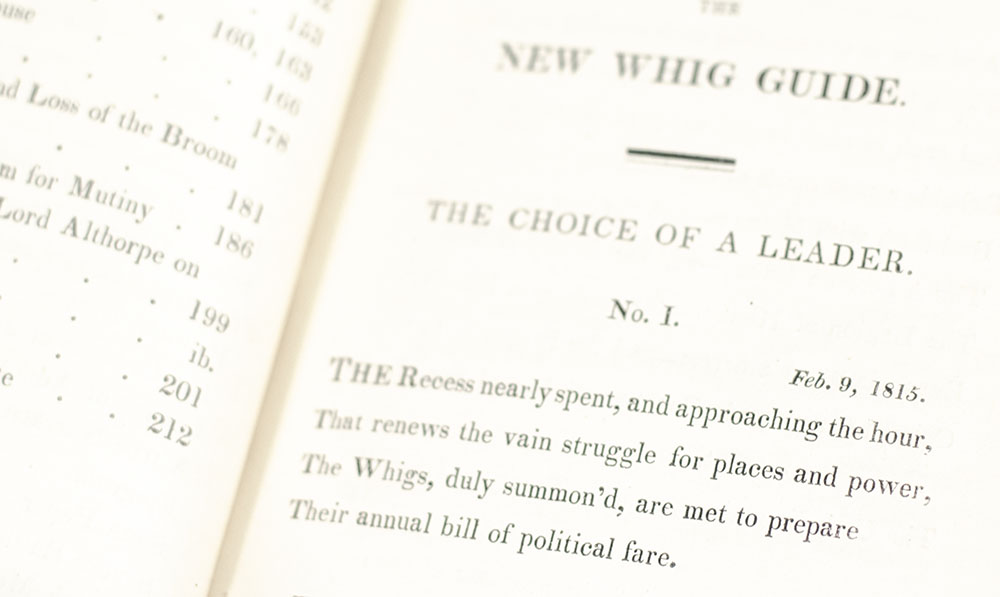 Rare first edition of the New Whig Guide; from the library of American Journalist William Safire