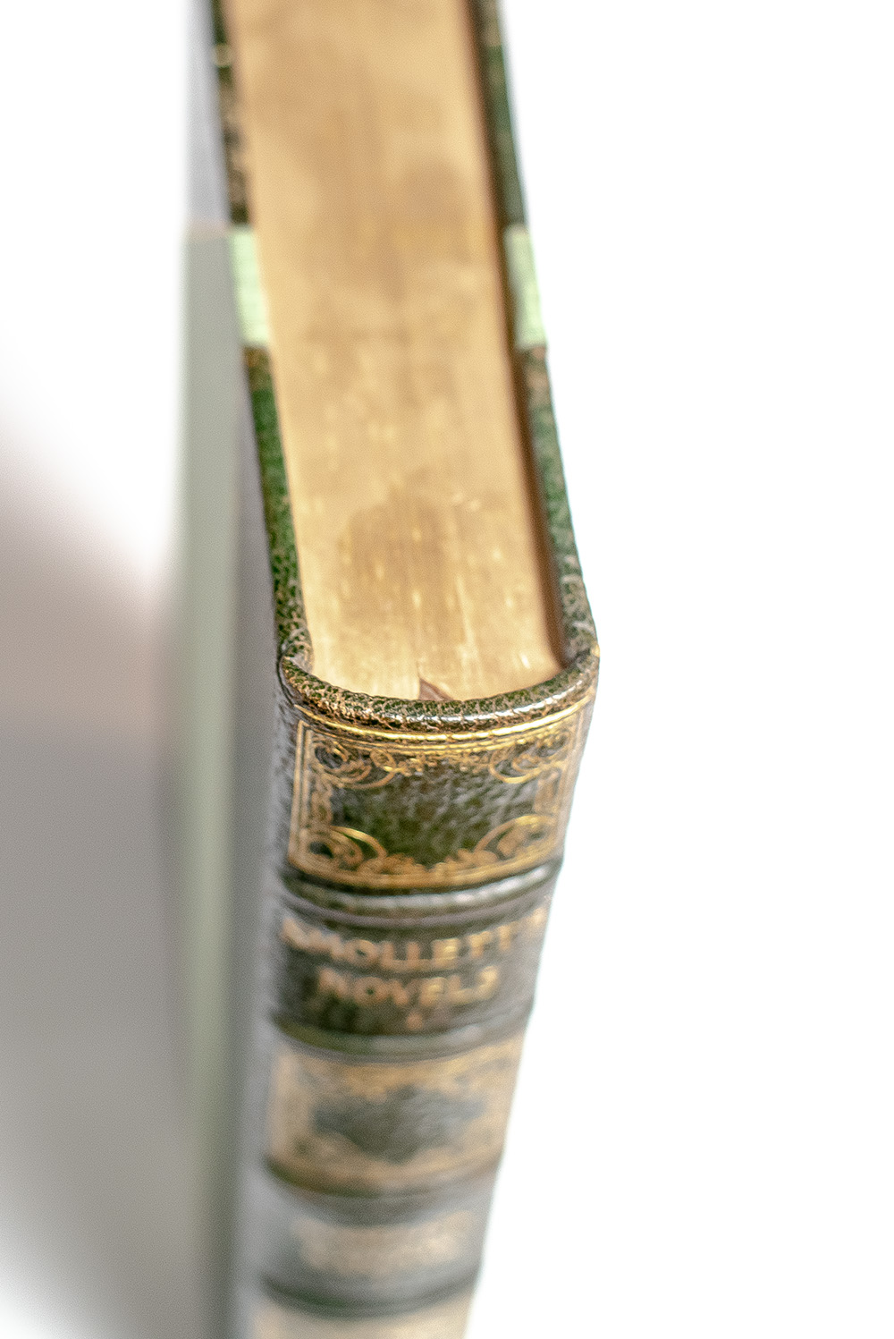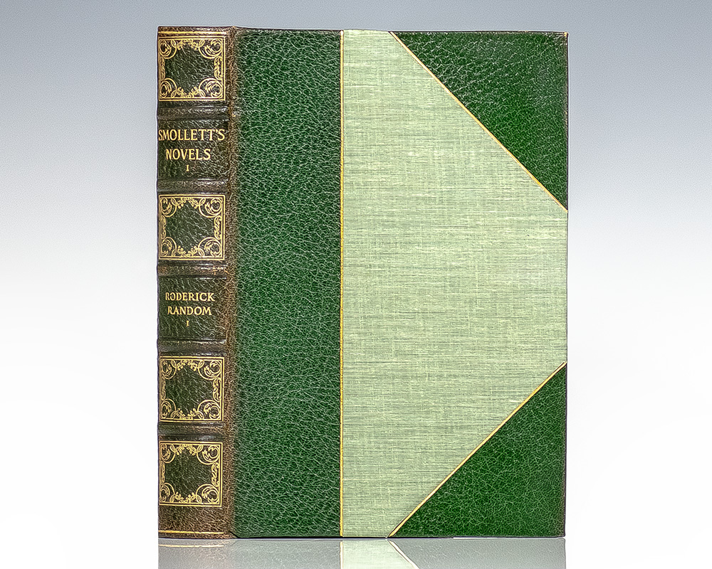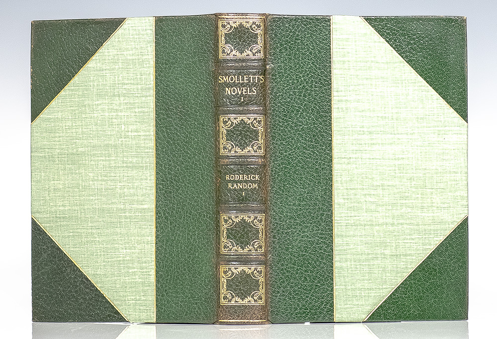 The Large Paper edition of the novels of Tobias Smollett. Octavo, 8 volumes bound in three quarter morocco at the Riverside Press with gilt titles and tooling to the spine in six compartments within raised gilt bands, top edge gilt with others untrimmed, ribbons bound in,  Illustrated with frontispieces and several inserted plates each with lettered tissue guard. In near fine condition. An attractive set.