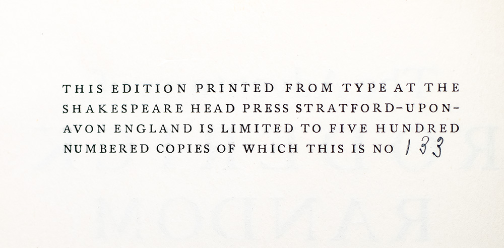 Stratford-Upon-Avon: Printed at the Shakespeare Head Press, 1926.