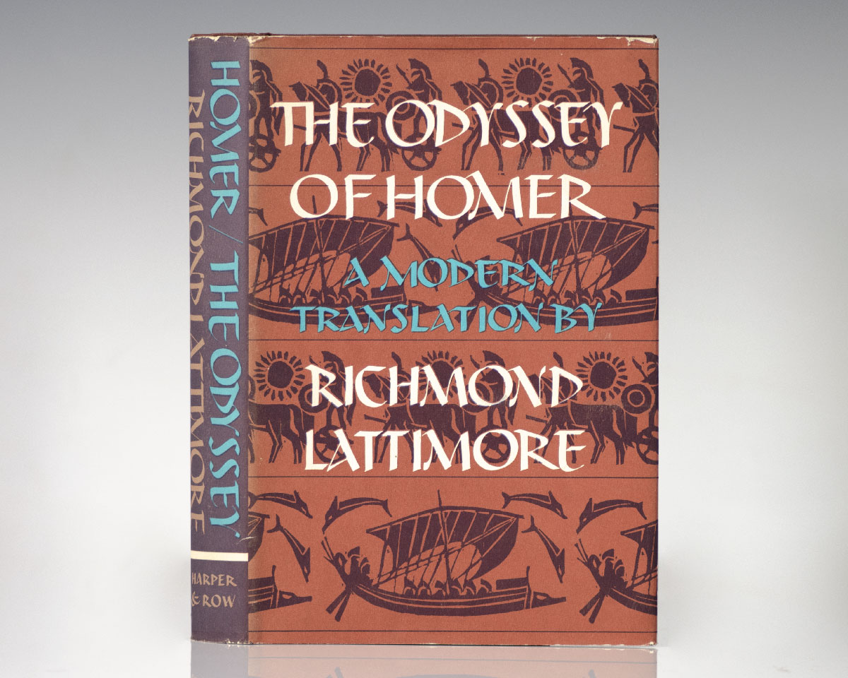 First edition of Lattimore's acclaimed translation called "the finest translation of Homer ever made into the English language" (William Arrowsmith). Octavo, original cloth. Very good in a very good dust jacket, small stamp to the bottom edge. Jacket design by Guy Fleming. First editions are uncommon.