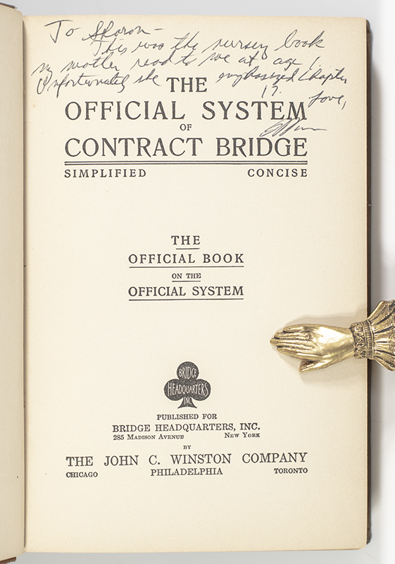 "This was the nursery book my mother read to me at age 1": First Edition of The Official System of Contract Bridge; Inscribed by Warren Buffett to his Bridge mentor