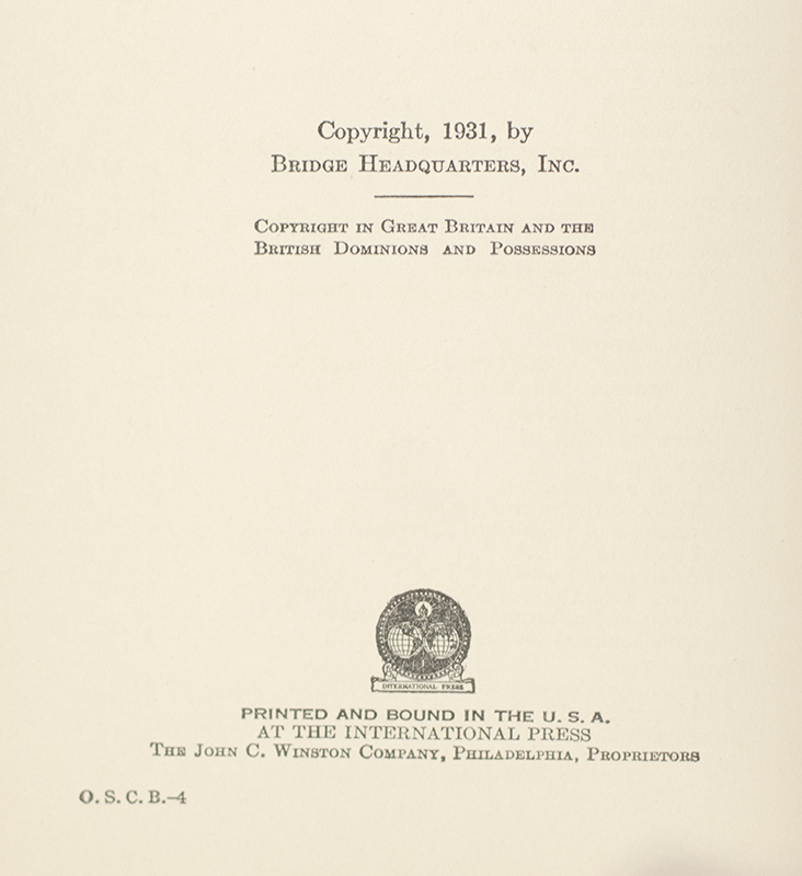 New York: Produced by Bridge Headquarters, 1931.