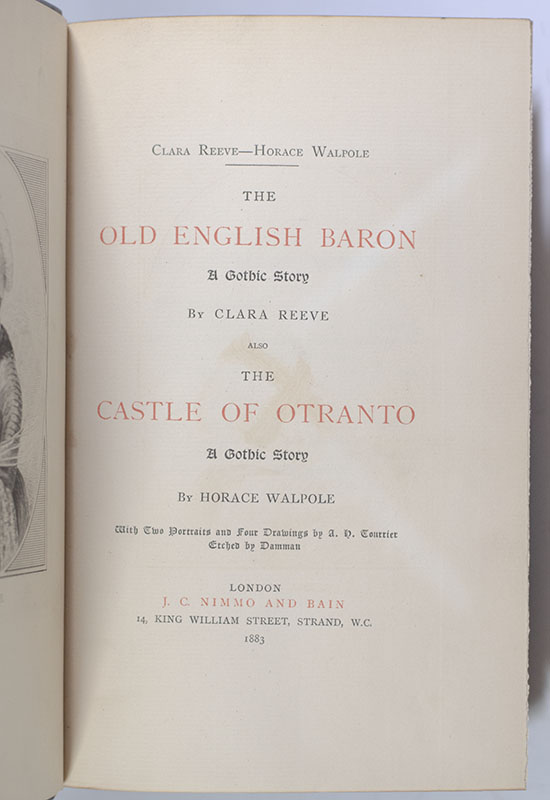 The Old English Baron: A Gothic Tale by Clara Reeve and The Castle of Otranto: A Gothic Story by Horace Walpole; finely bound in full contemporary calf