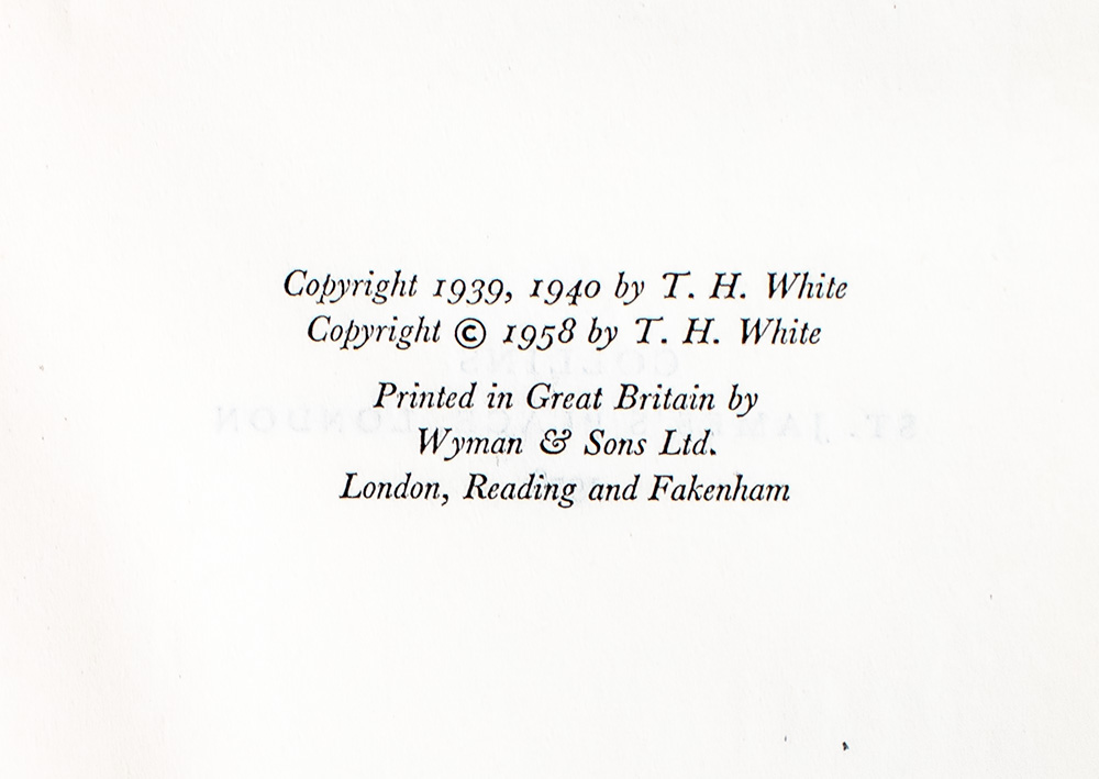 First edition of the single volume of White's Arthurian trilogy, Octavo, original cloth. Near fine in a near fine dust jacket. A very sharp example, rare in the original dust jacket.