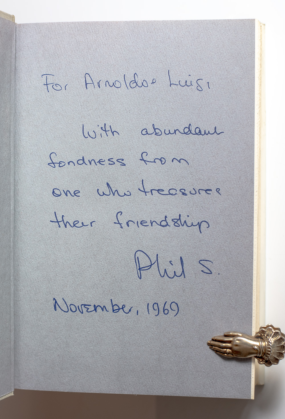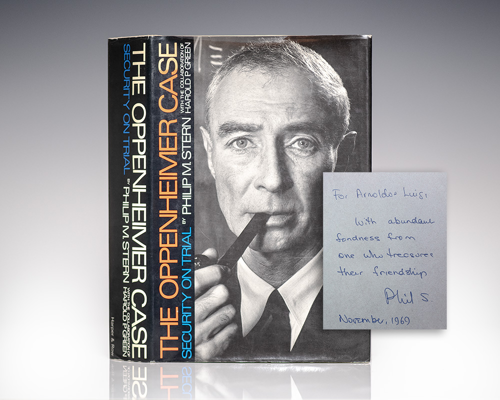 First edition of this early biography of J. Robert Oppenheimer. Octavo, original cloth. Presentation copy, inscribed by the author in the year of publication on the front free endpaper, "For Arnoldo Luigi With abundant fondness from one who treasures their friendship Phil S. November, 1969." Fine in a near fine dust jacket.