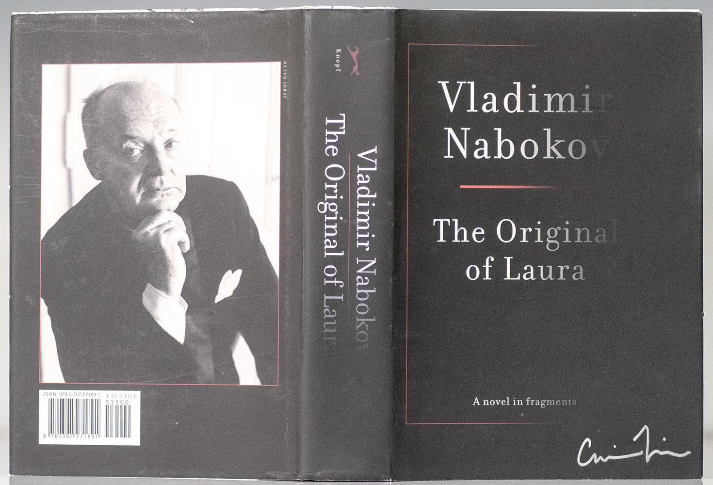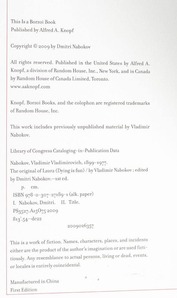 FIRST EDITION OF NABOKOV'S THE ORIGINAL OF LAURA (DYING IS FUN); SIGNED BY DMITRI NABOKOV AND THREE TIMES BY DESIGNER CHIP KIDD