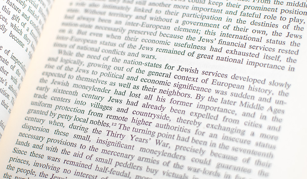 Hannah Arendt is "widely recognized as one of the most original and influential political thinkers of the 20th century." Origins of Totalitarianism, her first book in America, "established Arendt's reputation as a political thinker and has a good claim to be regarded as the key to her work" (Cambridge Companion, 1, 25). In this volume, "her acknowledged masterwork… she not only offered a uniquely clear-sighted, broad account of twentieth-century totalitarian politics and their antecedents, she also provided… a landmark contribution to the discourse of international human rights" (Benhabib, Politics in Dark Times, 83, 1). Consisting of three sections, Antisemitism, Imperialism and Totalitarianism, Origins "was written, simply, to begin what Arendt called 'the interminable dialogue' with a new and horrific form of politics… It was in this book that Arendt began to grapple with the problem of political evil—evil as policy—on an enormous and hitherto unimaginable scale" (Cambridge Companion, 2). Le Monde placed the book among the 100 best books of any kind of the 20th century, while the National Review ranked it #15 on its list of the 100 best non-fiction books of the century. The Intercollegiate Studies Institute listed it among the 50 best non-fiction books of the century.