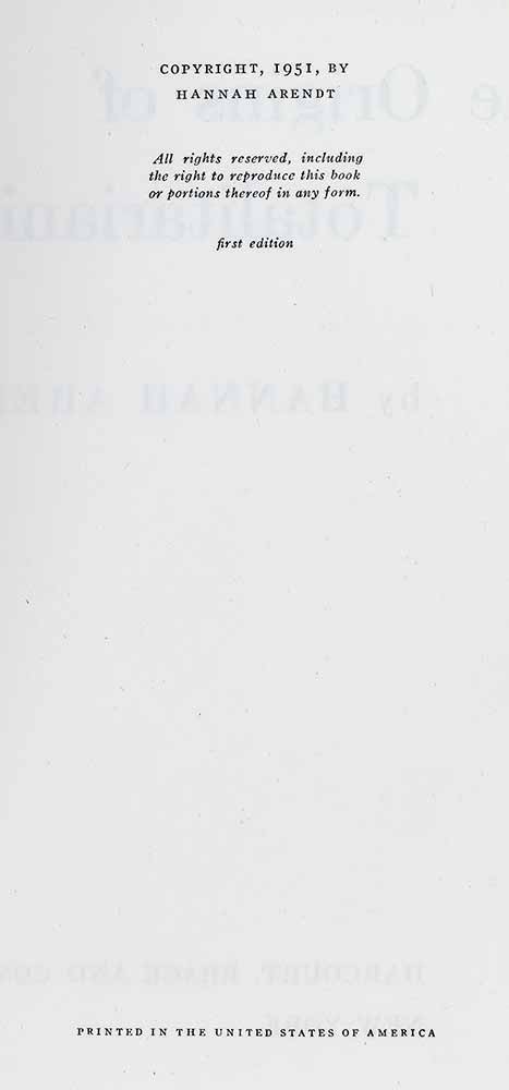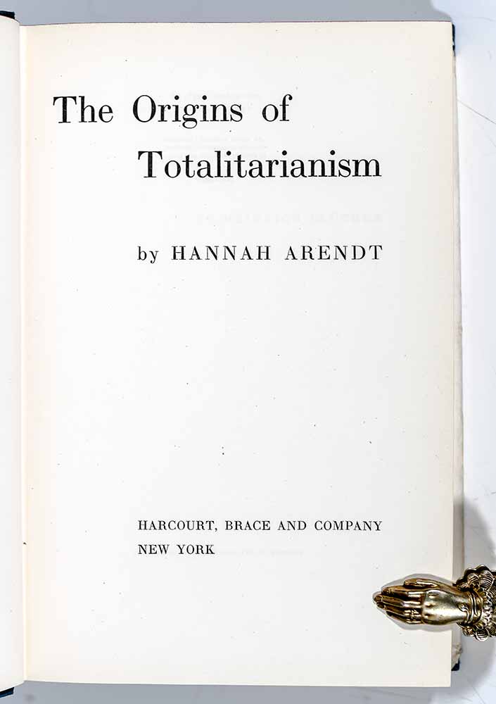 "One of the 100 best books of any kind of the 20th century": First Edition of Hannah Arendt's Masterpiece The Origins of Totalitarianism; Inscribed by Her in the Year of Publication