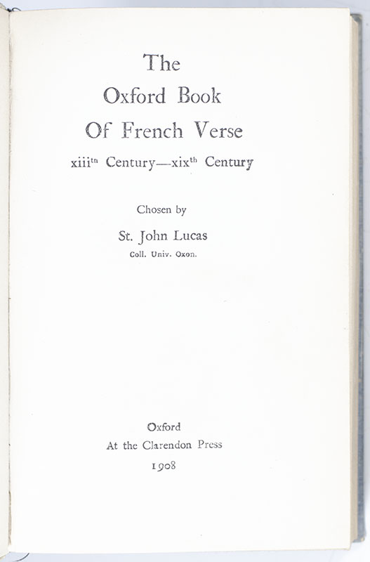 First edition of St. John Lucas' The Oxford Book of French Verse