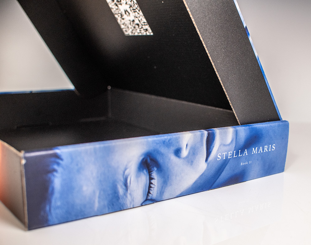 Original publisher's presentation box designed to house the first editions of McCarthy's two-volume masterpiece: The Passenger and Stella Maris. Folio, folding cardboard box designed by Chip Kidd. Signed by Chip Kidd on the front panel several months prior to publication, "Chip Kidd 8/'22." In fine condition.