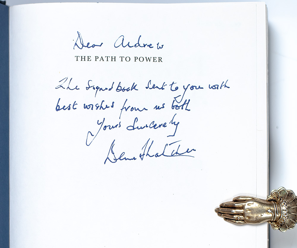 First Edition of The path to Power; inscribed by both Margaret Thatcher and Sir Denis Thatcher