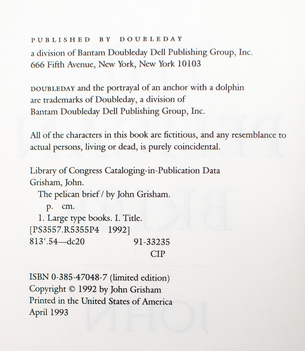 "The pursuit of truth and justice is a never-ending battle, but it is one worth fighting until the end": Signed limited edition of John Grisham's The Pelican Brief