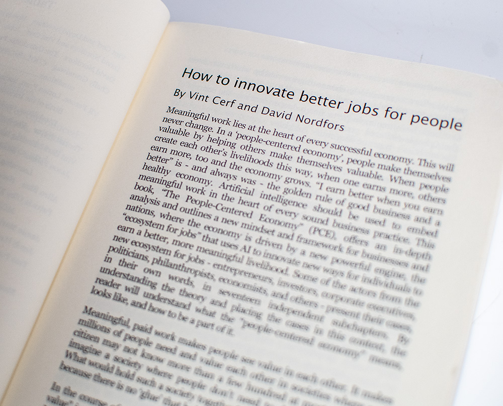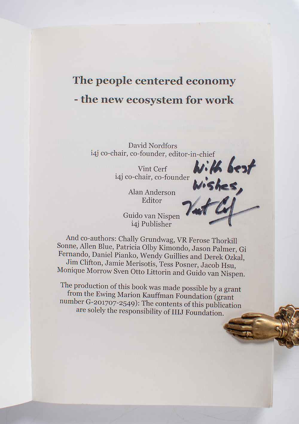 First Edition of David Nordfors and Vint Cerf's The People Centered Economy; inscribed by Vint Cerf