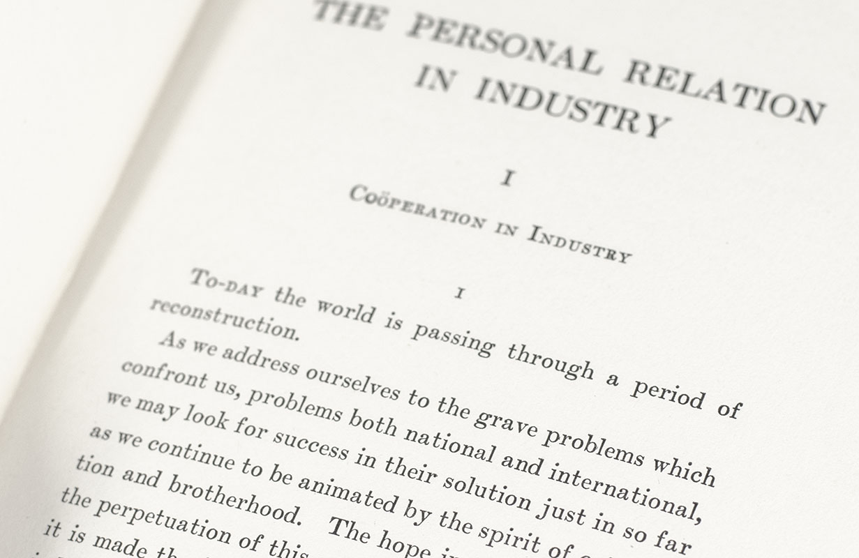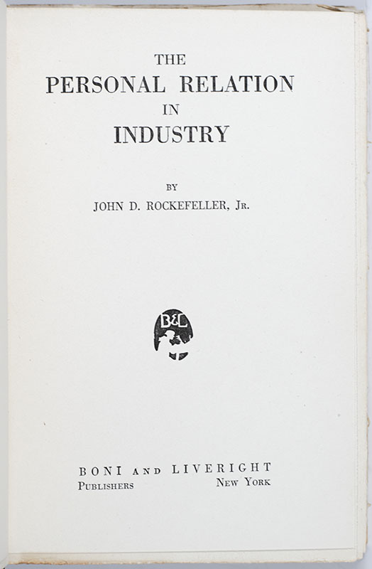 "It is this theme, co-operation in industry, that I desire to develop": Rare first edition of John D. Rockefeller Jr.'s The Personal Relation in Industry; in the rare original dust jacket