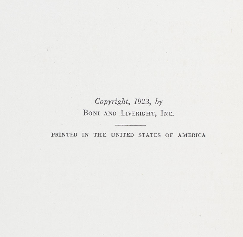 New York: Boni and Liveright, Inc, 1923.