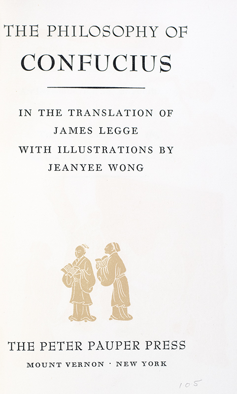 First Peter Pauper edition of Legge's translation of the Analects of Confucius. Octavo, bound in full pebbled morocco by Maurin with gilt titles and tooling to the spine in six compartments within raised gilt bands, double gilt ruling to the front and rear panels, gilt turn-ins and inner dentelles, all edges gilt, marbled endpapers, illustrations by Jeanyee Wong. In near fine condition. Housed in a custom slipcase.