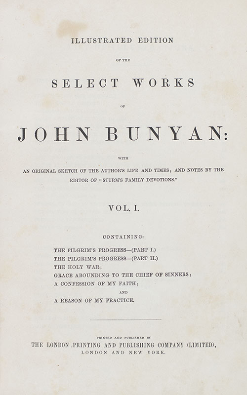 The Pilgrim's Progress, The Holy War, and Other Selected Works of John Bunyan. The Life of the Author written by himself. With Interesting Historical Facts Affecting Religion at the Period in which He Wrote Explanatory Notes and Illustrative Passages From Modern Divines. Arranged by the Editors of Sturm's Devotions.