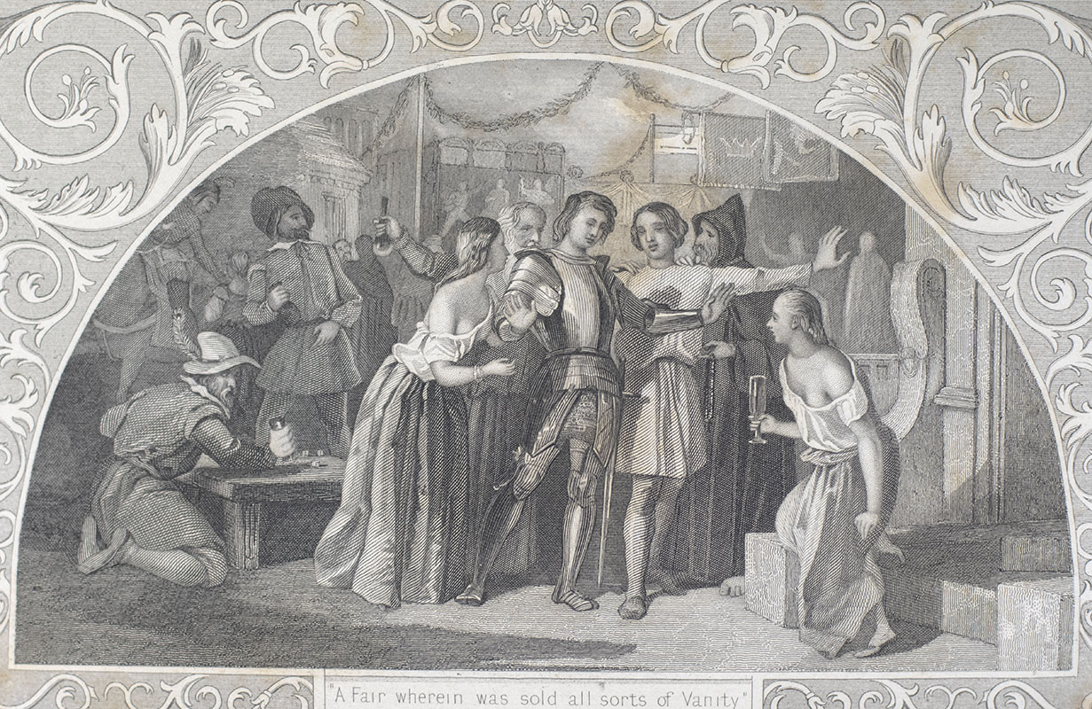 The illustrated edition of the selected works of John Bunyan. Quarto, elaborately bound in full morocco with elaborate gilt tooling to the spine in six compartments within raised gilt bands, red morocco spine label lettered in gilt, elaborate gilt ruling and stamping to the front and rear panels, marbled endpapers, all edges gilt, illustrated with engravings, frontispiece, and engraved title page.
