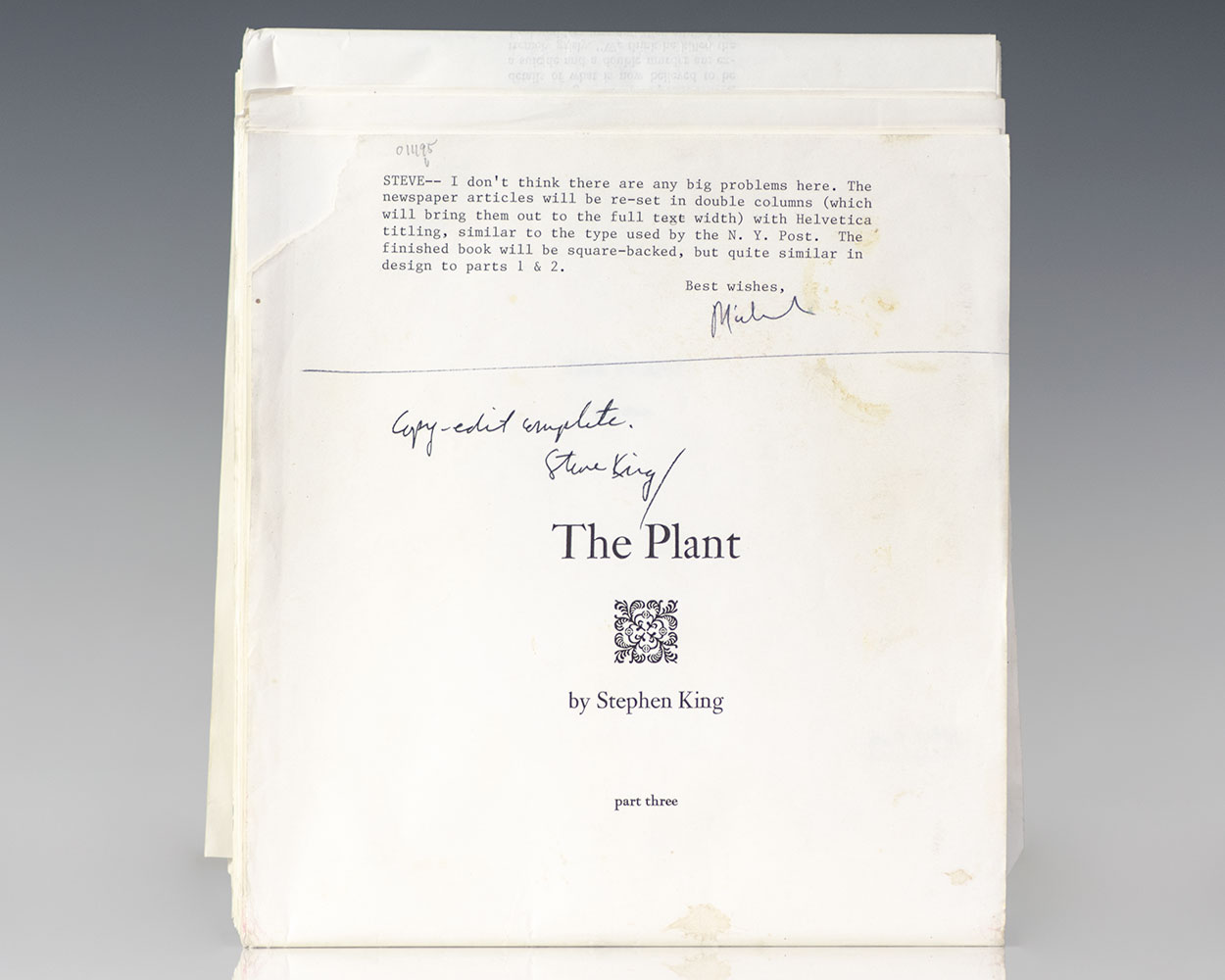 The Plant: Part Three Stephen King Original Annotated Galley Proof.