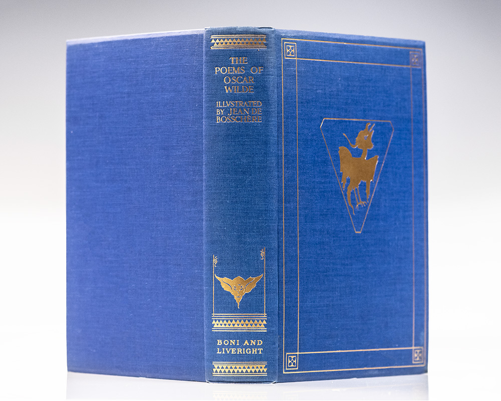First Bosschere edition of the poems of Oscar Wilde. Quarto, original publisher's cloth, top edge gilt with other untrimmed, illustrated with 8 color plates and 8 black and white plates. One of 2,000 numbered copies, this is number 1647. In near fine condition.