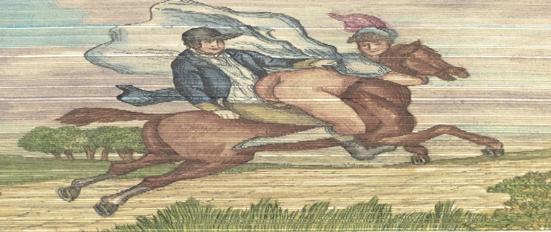 The first known example of a disappearing fore-edge painting (where the painting is not visible when the book is closed) dates back to 1649. Around 1750, the subject matter of fore-edge paintings changed from simply decorative or heraldic designs to landscapes, portraits and religious scenes, usually painted in full color. The technique was popularized in the 18th century by John Brindley (1732-1756), publisher and bookbinder to the Prince of Wales and Edwards of Halifax, a distinguished family of bookbinders and booksellers. The majority of extant examples of fore-edge paintings date to the late 19th and early 20th century on reproductions of books originally published in the early 19th century, including the present volume.