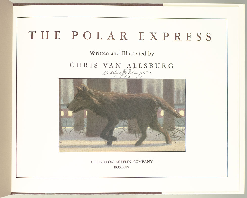 Early printing of Van Allsburg’s lushly illustrated, enchanting tale of childlike wonder and hope, winner of the 1986 Caldecott Medal. Oblong quarto, original cloth, illustrated throughout. Signed by Chris Van Allsburg on the title page. Fine in a fine dust jacket.