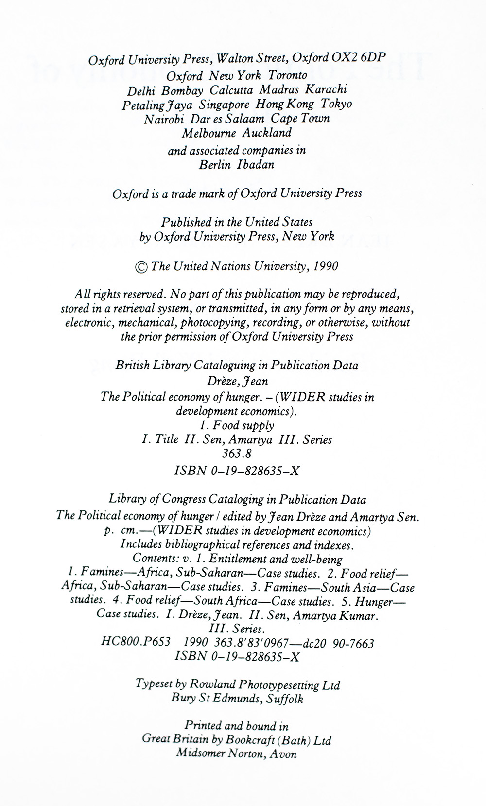 Hailed on its initial publication as a work with immediate implications for countless lives, Dreze & Sen's The Political Economy of Hunger is the classic analysis of an extraordinary paradox: in a world of food surpluses and diseases of overeating, hunger kills millions more people each year than wars or political repression. Now this abridged version puts the most essential and influential essays from the three-volume work within the reach of concerned citizens who want to understand the real causes of hunger and deprivation. Famines, the contributors believe, are caused not just by food shortages, but by social and economic factors, and a whole host of factors may intervene between a natural disaster and the ensuing famine. The most common instinctive reaction to famines--increasing the amount of food per capita--may only be effective in the very short term, and the real solution may turn out to be counter-intuitive. Ranging from Africa to South Asia to China and written by an international array of authorities, the essays included in this abridgement give the best available analysis of the causes of worldwide hunger, and the best hope for effective aid policies in the future.
