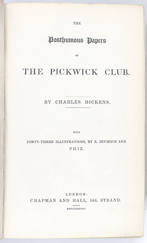 "Poetry makes life what lights and music do the stage": FIRST EDITION in book form OF DICKENS The Posthumous Papers of the Pickwick Club; finely bound