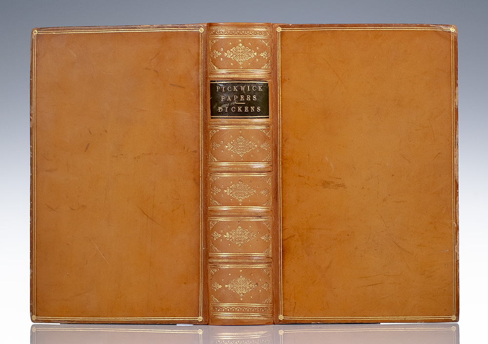 First edition in book form of Dickens' first novel and one of his greatest works. Octavo, bound in full morocco with elaborate gilt tooling to the spine in six compartments within raised gilt bands, morocco spine labels lettered in gilt, double gilt ruling to the front and rear panels, marbled endpapers, all edges marbled. Forty-three engraved plates by Seymour and Phiz, and the two Buss plates which Dickens requested to be removed in subsequent printings on pages 69 and 74, frontispiece and title vignette. In very good condition.