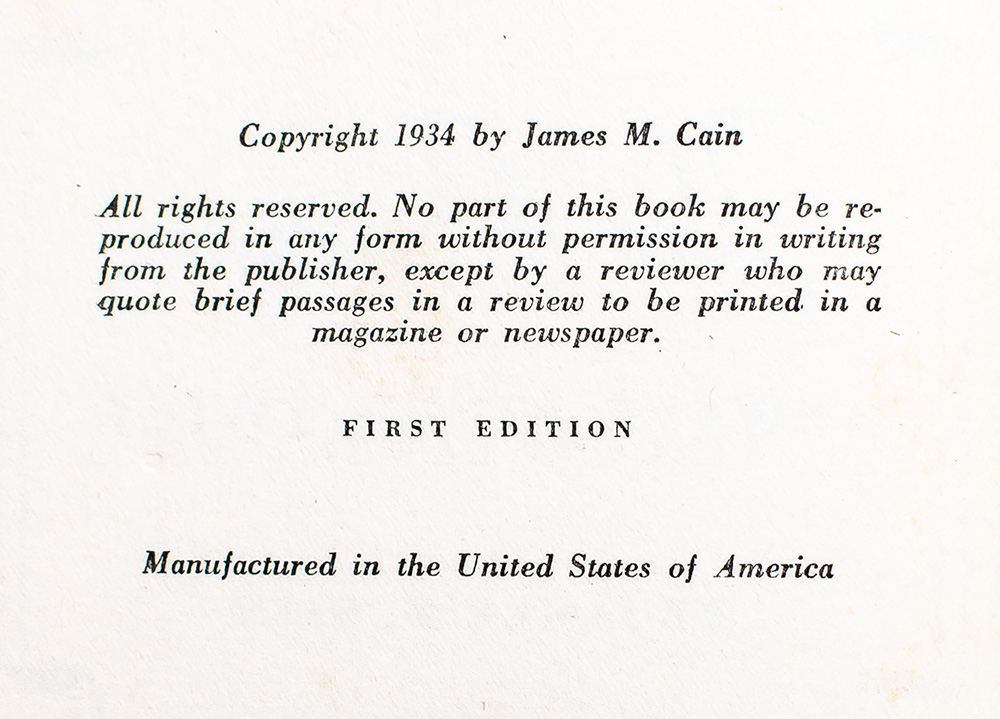 "One of the most important crime novels of the 20th century": First Edition of The Postman Always Rings Twice; Finely Bound by the Harcourt Bindery