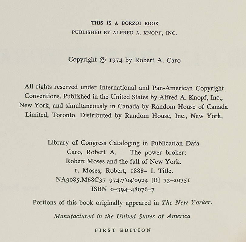 "In the twentieth century, the influence of Robert Moses on the cities of America was greater than that of any other person": First Edition of The Power Broker; Signed By Robert A. Caro