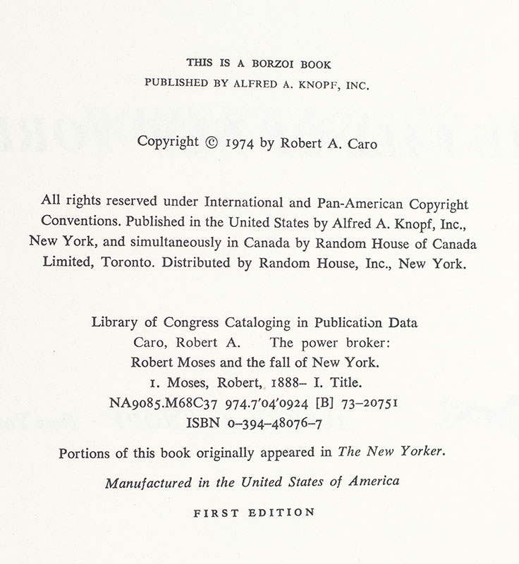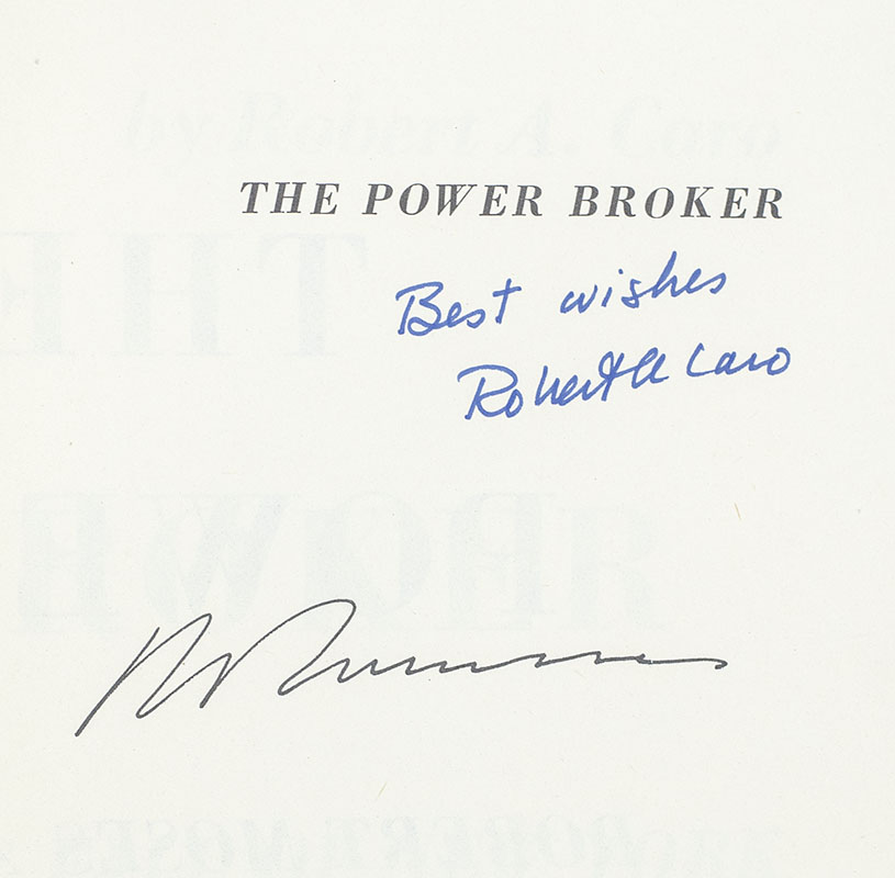 "In the twentieth century, the influence of Robert Moses on the cities of America was greater than that of any other person": First Edition of The Power Broker; Signed By Robert A. Caro and Robert Moses
