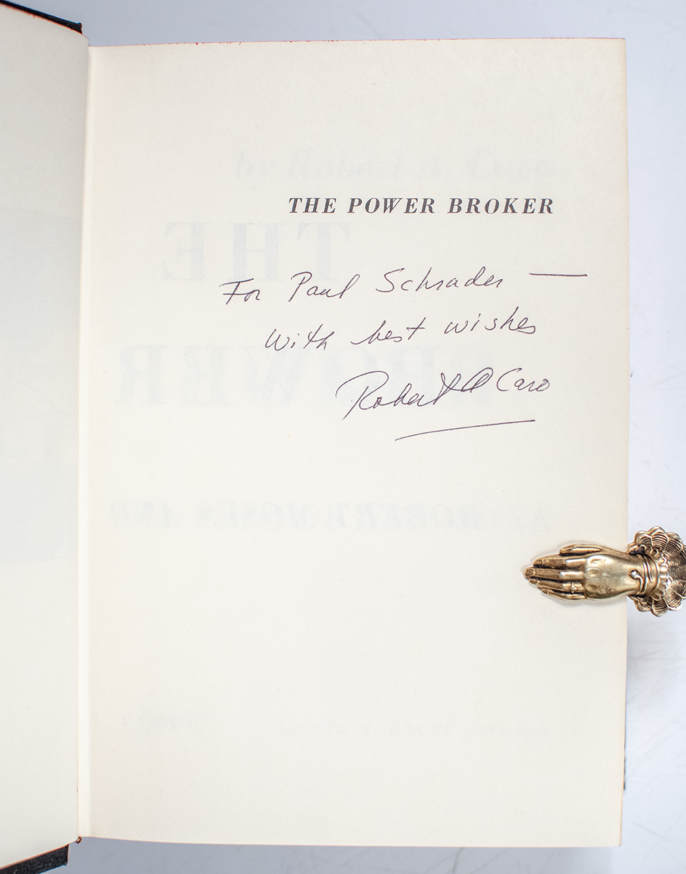 "In the twentieth century, the influence of Robert Moses on the cities of America was greater than that of any other person": First Edition of The Power Broker; Inscribed By Robert A. Caro to the screenwriter of Taxi Driver, Paul Schrader