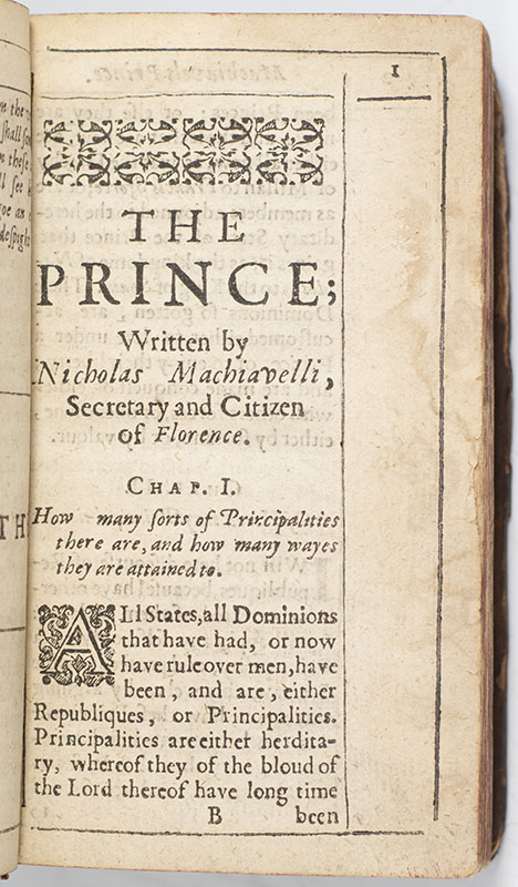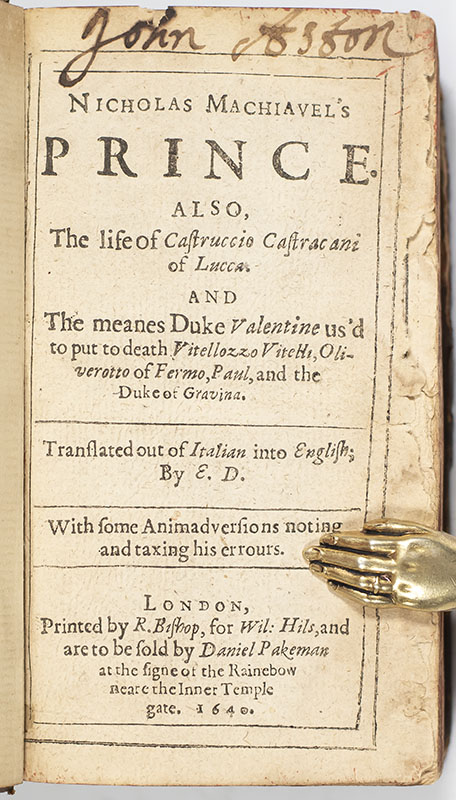 “FOUNDED THE SCIENCE OF MODERN POLITICS”: RARE 1640 FIRST EDITION IN ENGLISH OF MACHIAVELLI’S THE PRINCE