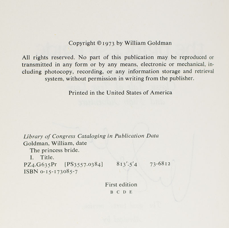 "As you wish...": First Edition of The Princess Bride; Signed by William Goldman
