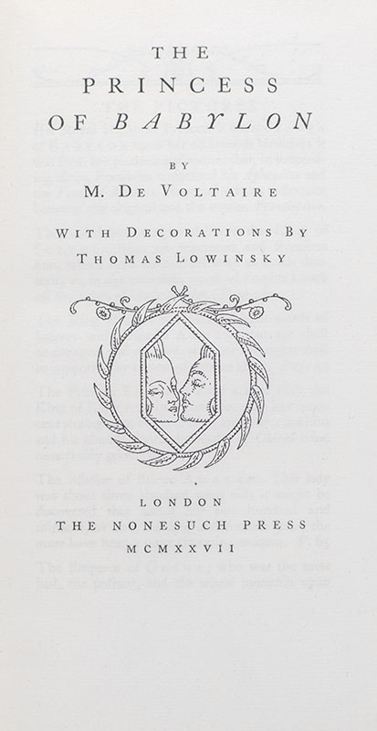 First Nonesuch Press edition of Voltaire's The Princess of Babylon