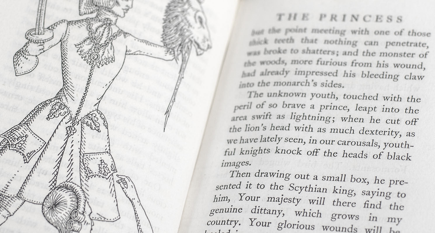 “One of Voltaire’s finest romances”, The Princess of Babylon relays the story of the beautiful Formosanta, who travels the world in search of her lover Amazan (Barron, Fantasy Literature I:88). Subtle in its philosophy, Voltaire breaks narrative conventions in this novella to foster Enlightenment values and in the process also “pokes fun at a number of literary traditions” (Pearson, Fables of Reason 196). The novella saw instant success upon publication and was in such demand that it was being illegally pirated in England, and printed under a false imprint of ‘Geneva’ when it was actually printed in London. Founded in 1922 in London by Francis Meynell, his second wife Vera Mendel, and their mutual friend David Garnett, The Nonesuch Press was established in the basement of Garnett's bookshop in Soho. Nonesuch was unusual among private presses in that it used a small hand press to design books and then had them printed by commercial printers. Among the press's best-known editions were the collected works of William Congreve and William Wycherley and translations of Cervantes and Dante.