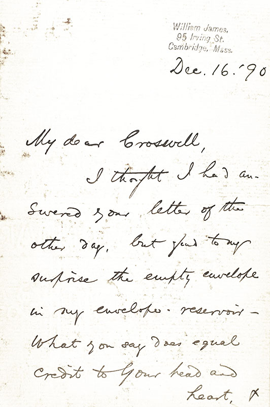 "A man's Self is the sum total of all that he can call his, not only his body and his psychic powers, but his clothes and his house": First Edition of Williams James' The Principles of Psychology; with an Autograph Letter Signed by Him Tipped In