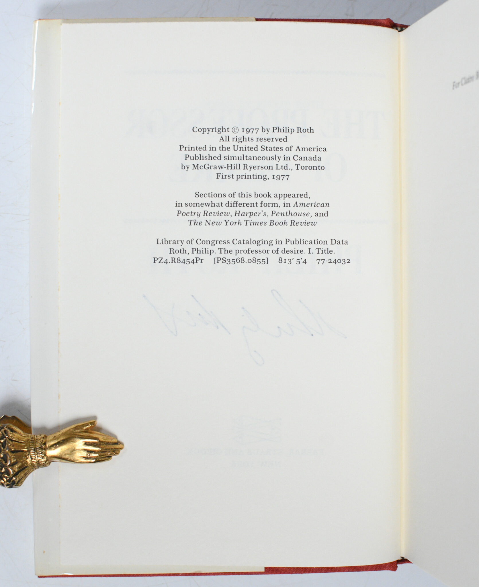 "How easy life is when it's easy, and how hard when it's hard": First Edition of The Professor of Desire; Signed by Philip Roth