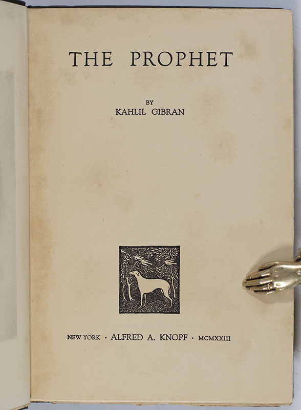“The timeless in you is aware of life's timelessness. And knows that yesterday is but today's memory and tomorrow is today's dream": Scarce First Edition of Kahlil Gibran's The Prophet