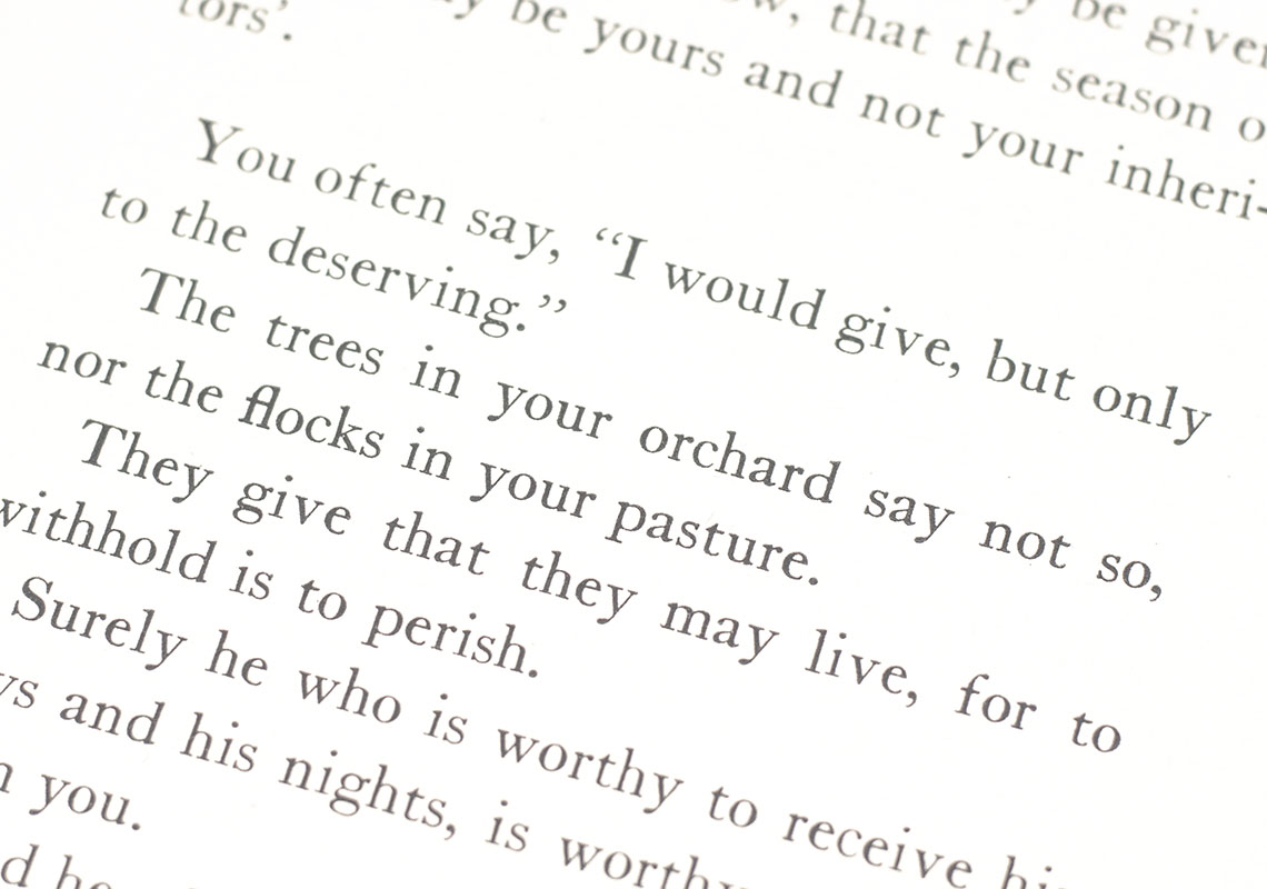 The Prophet is a collection of poetic essays that are philosophical, spiritual, and, above all, inspirational. Gibran’s musings are divided into twenty-eight chapters covering such sprawling topics as love, marriage, children, giving, eating and drinking, work, joy and sorrow, housing, clothes, buying and selling, crime and punishment, laws, freedom, reason and passion, pain, self-knowledge, teaching, friendship, talking, time, good and evil, prayer, pleasure, beauty, religion, and death. It has been translated into well over 40 languages. By 2012, it had sold more than nine million copies in its American edition alone since its original publication in 1923.