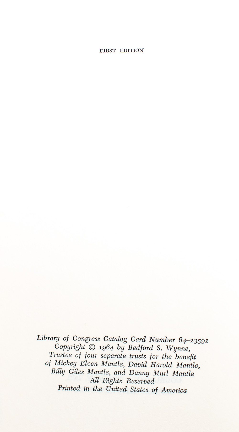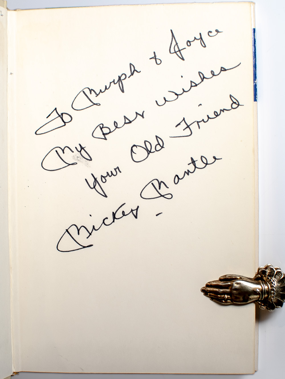 First edition of this early work by baseball Hall of Famer Mickey Mantle. Octavo, original cloth. Presentation copy, warmly inscribed by the author on the front free endpaper, "To Murph and Joyce My Best Wishes Your Old Friend Mickey Mantle." Near fine in a near fine jacket. Jacket photograph by Fred Kaplan. Jacket design by Stoney Butchkes. Uncommon signed.