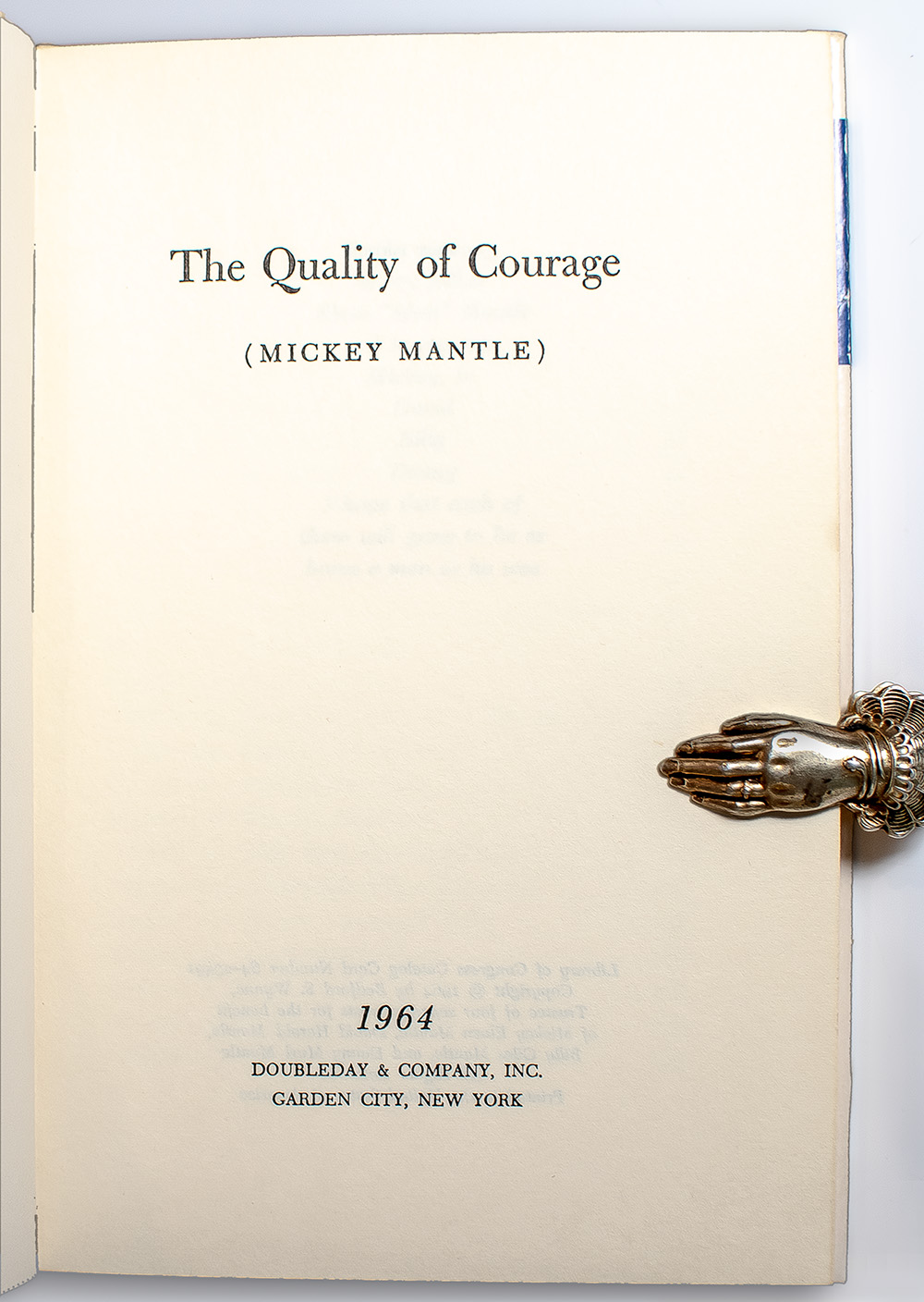 "The bravest man I ever knew was my father": First edition of The Quality of Courage; Warmly Inscribed by Mickey Mantle
