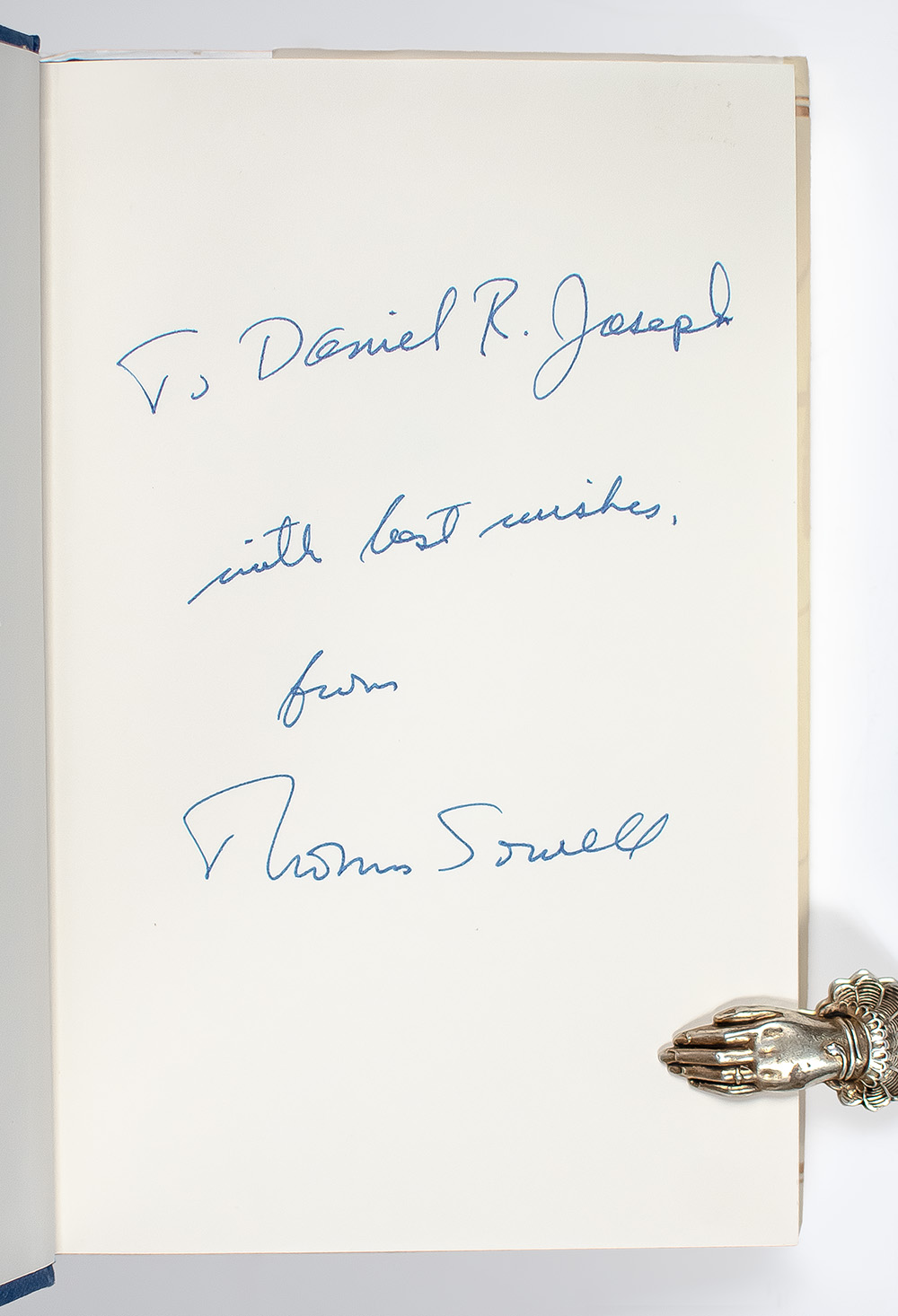 First edition of this work by the award-winning economist. Octavo, original half-cloth. Presentation copy, inscibed by the author on the front free endpaper, "To Daniel R. Joseph with best wishes, from Thomas Sowell." Near fine in a near fine price-clipped dust jacket. Jacket design by Tom Stvan. Jacket calligraphy by Anita Karl. Uncommon signed and inscribed.