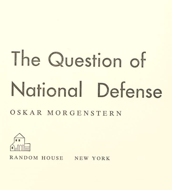 First Edition of The Question of National Defense; Inscribed by the Co-Founder of Game Theory Oskar Morgenstern