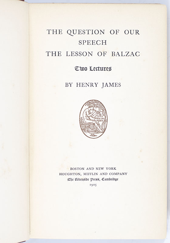 First edition of this publication of two notable speeches delivered by Henry James at Bryn Mawr College and the Contemporary Club of Philadelphia in 1905. Octavo, original cloth with gilt titles to the spine and front panel. From the library of Carl Van Vechten with his ownership signature to the front panel "Carl Van Vechten New York May 24 - 1919" and bookplate to the rear panel. Carl Van Vechten was an American writer and photographer, a major patron of the Harlem Renaissance, and the literary executor of Gertrude Stein. In near fine condition. A unique example with noted provenance.