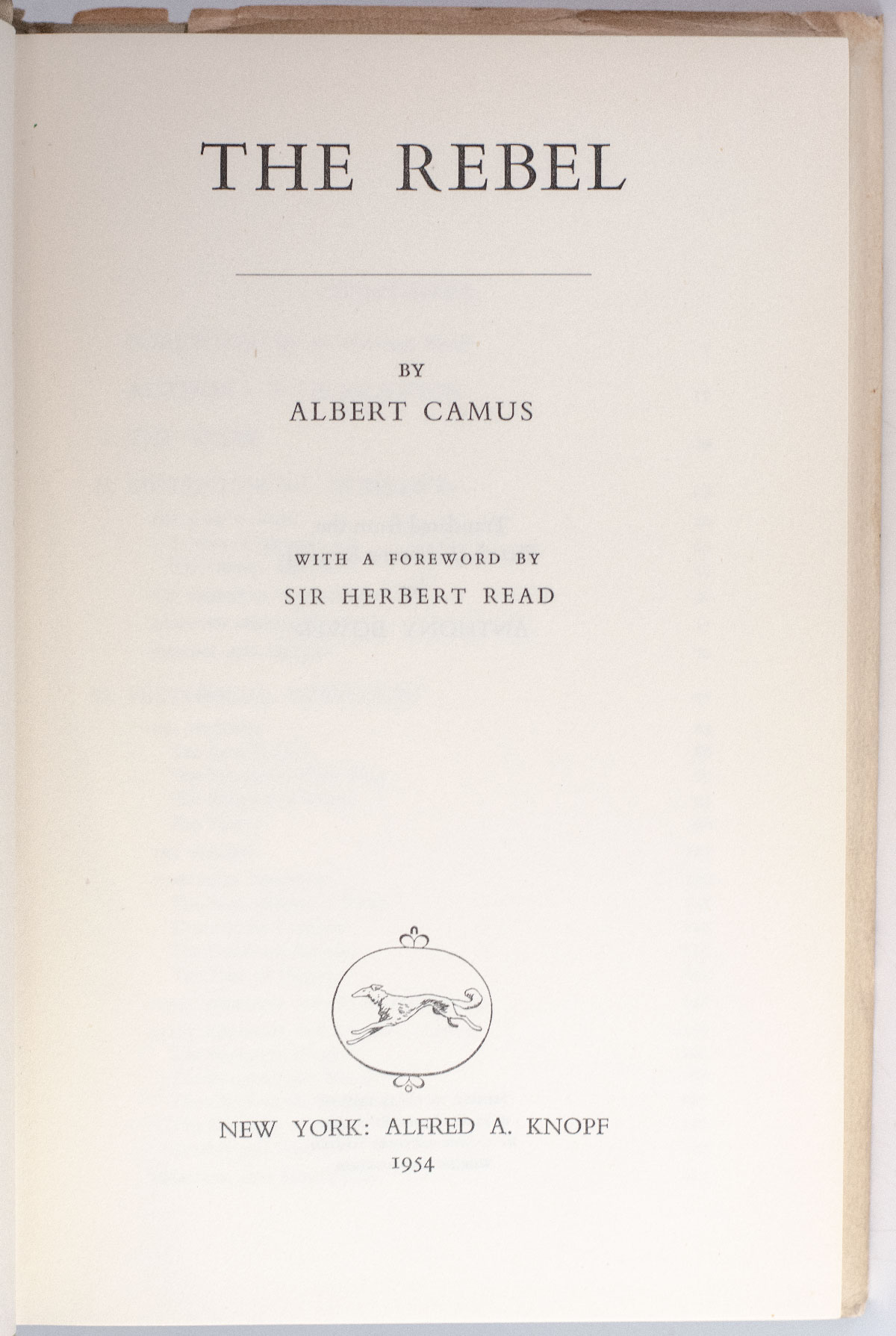 First edition of the Nobel Prize-winning author's classic work. Octavo, original cloth. Near fine in a very good dust jacket. With an introduction by Sir Herbert Read. Translated from the French by Anthony Bower.