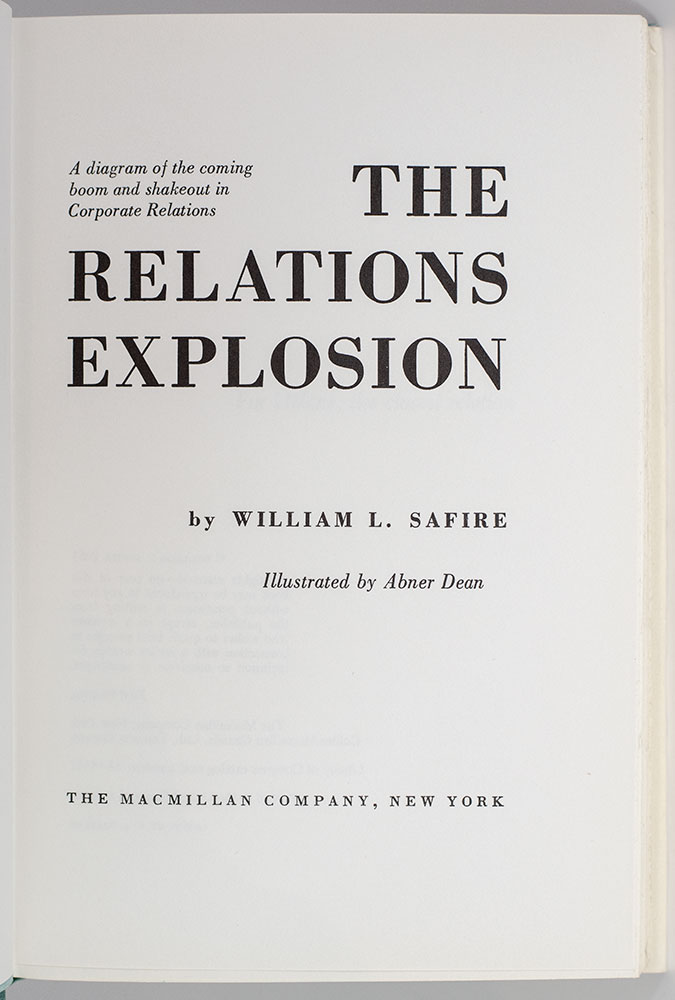 First edition of William Safire's The Relations Explosion; from his personal collection
